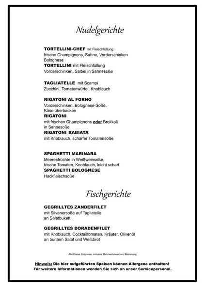 Unser Bistro bietet eine vielfältige Küche mit Köstlichkeiten und Gerichten für alle Geschmäcker und abwechselnden Gerichten passend zur Saison.