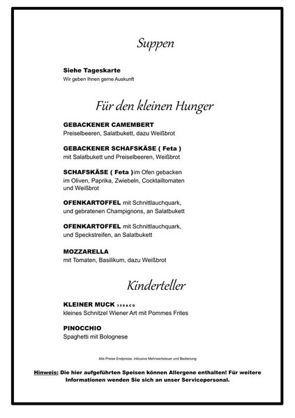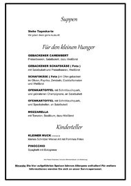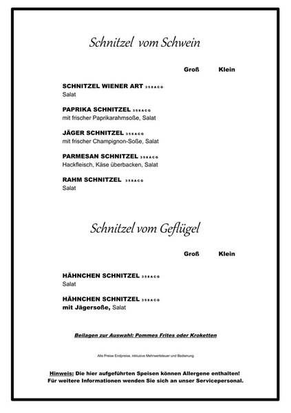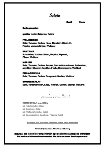 Aktuell bieten wir leider keine Fisch- und Steak Variationen an. Bitte um Beachtung !
